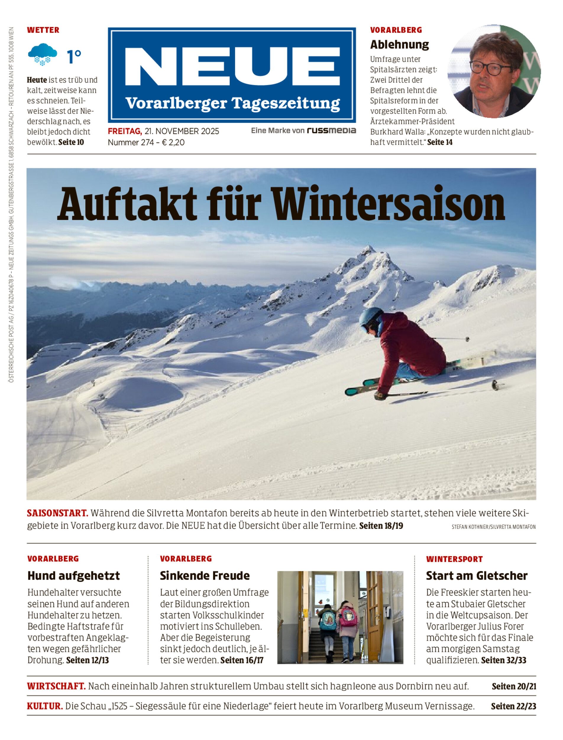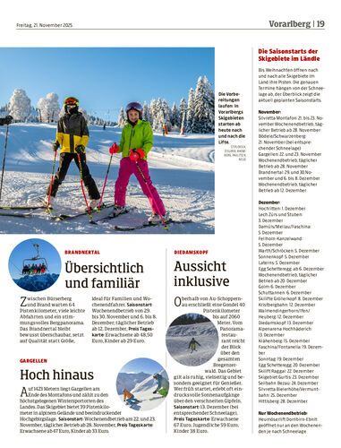 Vorarlberg startet heute in die neue Skisaison. Die NEUE zeigt, welche Skigebiete wann öffnen und was ein Skitag kostet.