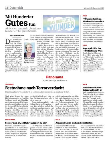 Aktivisten sammeln „Pensionshunderter“ für gute Zwecke.