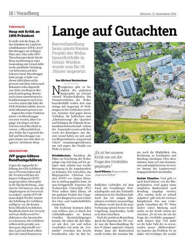 Bauverhandlung beim umstrittenen Projekt der Wohnbauselbsthilfe in Götzis-Wieden wurde nun für 19. Jänner angesetzt.