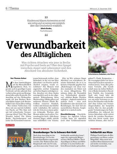 Was richten Attacken wie jene in Berlin mit Psyche und Seele an? Über den Spagat zwischen Angst und Lebensmut und den Abschied von absoluter Sicherheit.