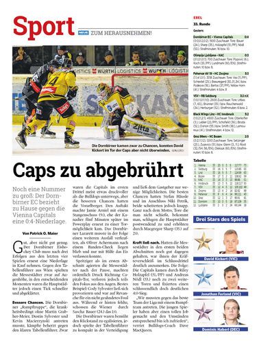 Noch eine Nummer zu groß: Der Dornbirner EC bezieht zu Hause gegen die Vienna Capitals eine 0:4-Niederlage.