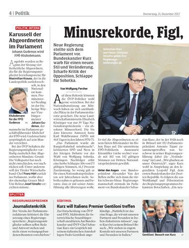 Neue Regierung stellte sich dem Parlament vor. Bundeskanzler Kurz warb für einen neuen Stil und Veränderung. Scharfe Kritik der Opposition, Schlappe für Sobotka.