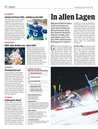 Mikaela Shiffrin holte sich in Courchevel nach dem Erfolg im Riesentorlauf auch den Sieg im Parallel-Slalom, wurde aber gefordert, auch von den ÖSV-Läuferinnen. Kirchgasser verletzt.