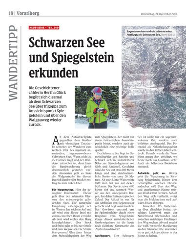 Die Geschichtenerzählerin Hertha Glück begibt sich diesmal ab dem Schwarzen See über Ifigoppa zum Aussichtspunkt Spiegelstein und über den Walgauweg wieder zurück.