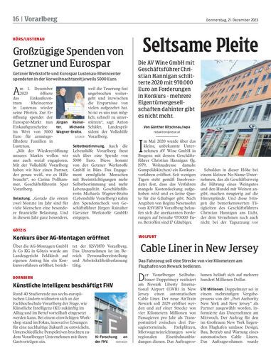Getzner Werkstoffe und Eurospar Lustenau-Rheincenter spendeten in der Vorweihnachtszeit jeweils 5000 Euro.