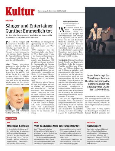 Der deutsche Kammersänger war in Konzert, Oper und TV präsent und starb im Alter von 79 Jahren.