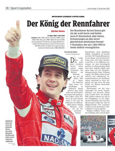 Der Brasilianer Ayrton Senna gilt als der wohl beste und beliebteste F1-Rennfahrer aller Zeiten. Erinnerungen an den unvergleichlichen dreifachen Formel-1-Champion, der am 1. Mai 1994 in Imola tödlich verunglückte.