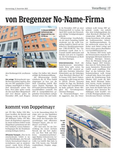 Die AV Wine GmbH mit Geschäftsführer Christian Hannigan schlitterte 2020 mit 970.000 Euro an Forderungen in Konkurs - mehrere Eigentümergesellschaften dahinter gibt es nicht mehr.