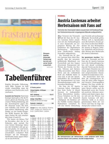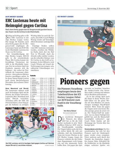 Nach dem Derby gegen den EC Bregenzwald gastiert heute das Team von SG Cortina in der Rheinhalle.