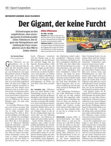 Erinnerungen an den ungekrönten, aber unvergessenen Frankokanadier Gilles Villeneuve. Der Gigant der Königsklasse und Liebling der Fans verunglückte am 8. Mai 1982 in Zolder tödlich.