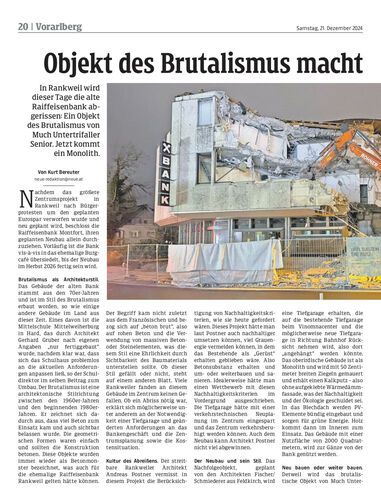 In Rankweil wird dieser Tage die alte Raiffeisenbank abgerissen: Ein Objekt des Brutalismus von Much Untertrifaller Senior. Jetzt kommt ein Monolith.