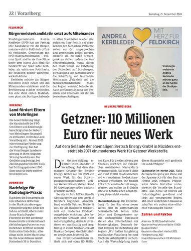 Auf dem Gelände der ehemaligen Bertsch Energy GmbH in Nüziders entsteht bis 2027 ein modernes Werk für Getzner Werkstoffe.