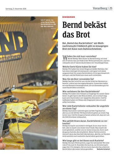 Bei „Bernd das Raclettebrot“ am Weihnachtsmarkt Feldkirch gibt es knuspriges Brot mit Käse zum Dahinschmelzen.