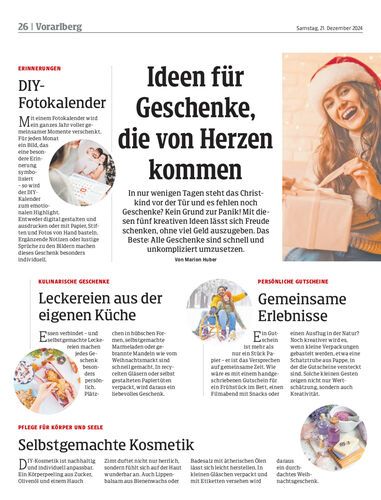 In nur wenigen Tagen steht das Christkind vor der Tür und es fehlen noch Geschenke? Kein Grund zur Panik! Mit diesen fünf kreativen Ideen lässt sich Freude schenken, ohne viel Geld auszugeben. Das Beste: Alle Geschenke sind schnell und unkompliziert umzusetzen.