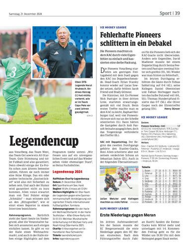 Heute startet um 14 Uhr der Legendencup in der Sporthalle am See in Hard. Fußball-Legenden der Vergangenheit kicken für einen guten Zweck.