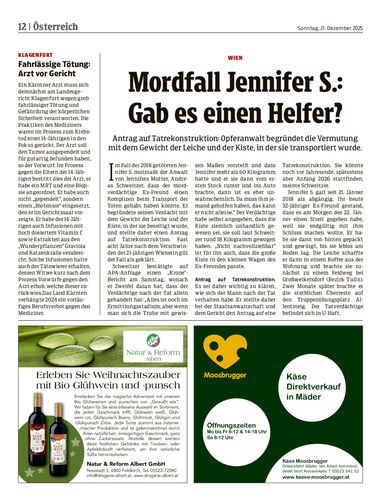 Antrag auf Tatrekonstruktion: Opferanwalt begründet die Vermutung mit dem Gewicht der Leiche und der Kiste, in der sie transportiert wurde.