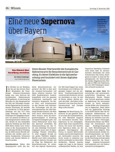 Unter diesem Titel bewirbt die Europäische Südsternwarte ihr Besucherzentrum in Garching. Es bietet Einblicke in die Spitzenforschung und fasziniert mit ihrem digitalen Planetarium.