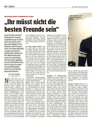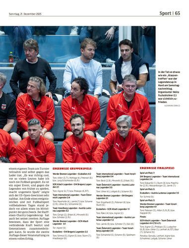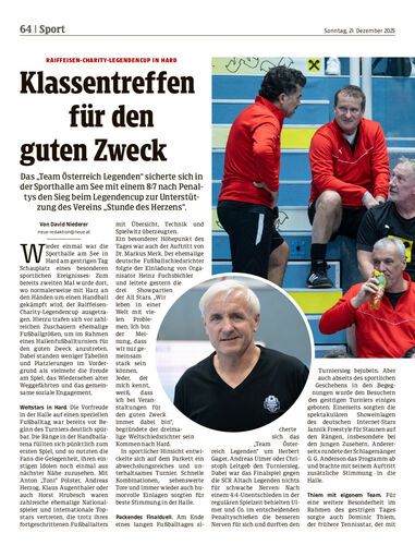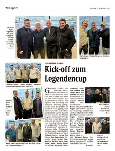 Auch bei der zweiten Auflage des Charity-Legendencups in Hard kam der Spaß unter den ehemaligen Starkickern nicht zu kurz. Doch vor allem Michael Langer und Stefan Maierhofer denken in der Weihnachtszeit auch an wohltätige Zwecke oder appellieren an den Nachwuchs, hart an sich zu arbeiten und Mitspieler nicht nur am Handy kennenzulernen.