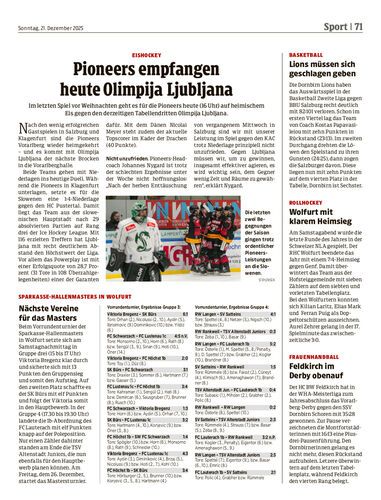 Pioneers empfangen heute Olimpija Ljubljana