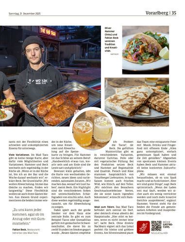 Mit seinen außergewöhnlichen Kreationen bringt das Mad Taco frischen Wind nach Vorarlberg und begeistert mit kreativen Gerichten.