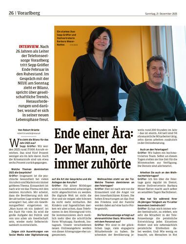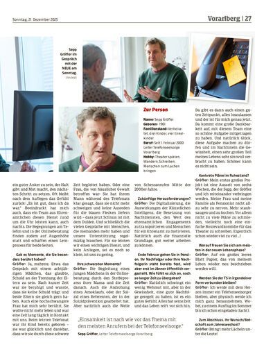 Interview. Nach 26 Jahren als Leiter der Telefonseelsorge Vorarlberg tritt Sepp Gröfler Ende Februar in den Ruhestand. Im Gespräch mit der NEUE am Sonntag zieht er Bilanz, spricht über gesellschaftliche Trends, Herausforderungen und darüber, worauf er sich in seiner neuen Lebensphase freut.