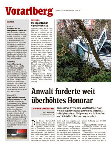 Rechtsanwalt verlangte von Mandanten aus Wohnanlage sechsstellige Summe. Im rechtskräftig beendeten Zivilprozess wurde ihm aber nur fünfstelliger Betrag zugesprochen.