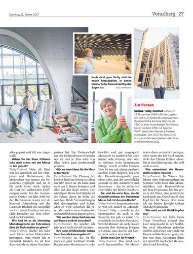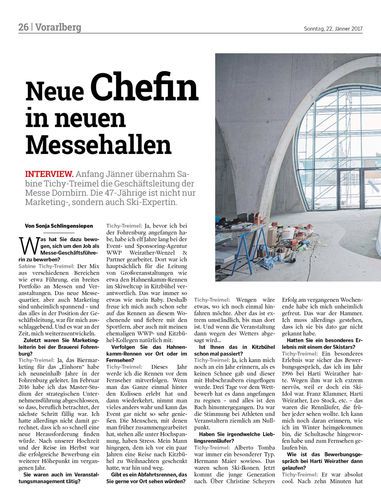 Interview. Anfang Jänner übernahm Sabine Tichy-Treimel die Geschäftsleitung der Messe Dornbirn. Die 47-Jährige ist nicht nur Marketing-, sondern auch Ski-Expertin.