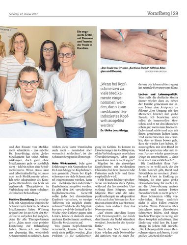 Allgemeinmedizinerin und Akupunkteurin Dr. Ulrike Lenz-Muigg (39, aus Lustenau) spricht über die Therapie chronischer Schmerzen, die Stärken der Akupunktur und die Berücksichtigung der menschlichen Psyche in der Behandlung.