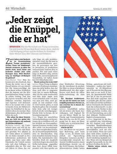 Interview. Was die Wirtschaft von Trump zu erwarten hat und was die EU aus dem Brexit lernen muss. Andritz-Chef Wolfgang Leitner und der frühere ifo-Präsident Hans-Werner Sinn über Chancen und Gefahren.
