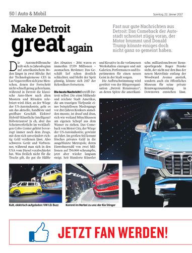 Fast nur gute Nachrichten aus Detroit: Das Comeback der Autostadt schreitet zügig voran, der Motor brummt und Donald Trump könnte einiges doch nicht ganz so gemeint haben.