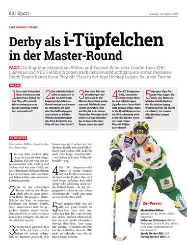 Lustenau und VEU Feldkirch zogen nach dem Grunddurchgang ein erstes Resümee. Beide Teams haben ihren Play-off-Platz in der Alps Hockey League fix in der Tasche.