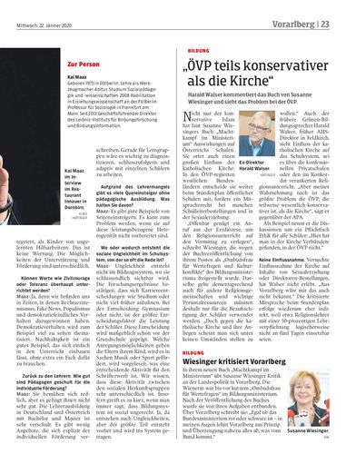 Harald Walser kommentiert das Buch von Susanne Wiesinger und sieht das Problem bei der ÖVP.