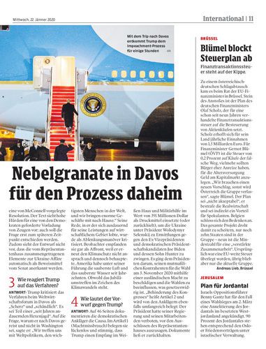 FRAGE & ANTWORT. In Washington hat das Amtsenthebungsverfahren im US-Senat gegen Donald Trump begonnen. Derweil lobt sich der US-Präsident in Davos selbst. Auch wenn ihm keine wirkliche Gefahr droht.