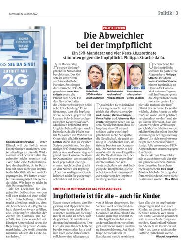 Ein SPÖ-Mandatar und vier Neos-Abgeordnete stimmten gegen die Impfpflicht. Philippa Strache dafür.