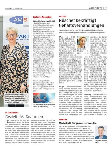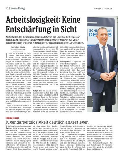 AMS stellte das Arbeitsprogramm 2025 vor. Die Lage bleibt herausfordernd. Landesgeschäftsführer Bernhard Bereuter rechnet für Vorarlberg mit einem weiteren Anstieg der Arbeitslosigkeit von 500 Personen.