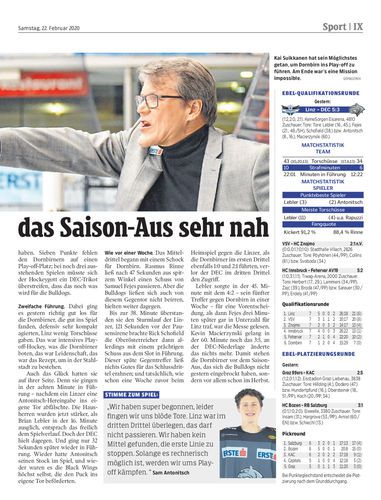 Die Bulldogs verlieren trotz einer lange Zeit starken Leistung und trotz zweifacher Führung mit 3:5 in Linz. Damit rückt das Saisonende immer näher.