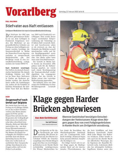 Oberster Gerichtshof bestätigte Entscheidungen der Vorinstanzen: Klage eines Bürgers gegen Bau von zwei Fußgängerbrücken in Harder Bucht am Zivilgericht unzulässig.