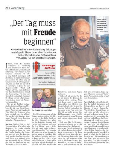 Xaver Gmeiner war 46 Jahre lang Zeitungsausträger in Bizau. Unter allen Umständen hat er täglich in aller Früh das Haus