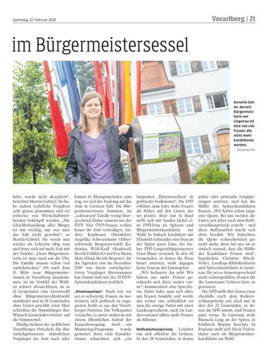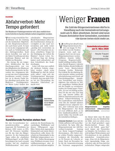 Die Zahl der Bürgermeisterinnen dürfte in Vorarlberg nach der Gemeindevertretungswahl am 15. März abnehmen. Derzeit sind neun Frauen Amtsleiter ihrer Gemeinden, zumindest vier davon treten nicht mehr an.