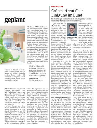 Die Vorarlberger Grünen feiern die Einigungen auf Landes- und Bundesebene zur Parteienfinanzierung.