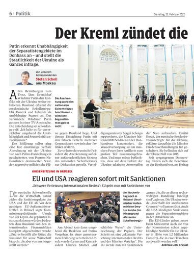 Putin erkennt Unabhängigkeit der Separatistengebiete im Donbass an – und stellt die Staatlichkeit der Ukraine als Ganzes infrage.