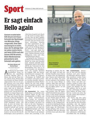 Gestern wurde beim SCR Altach mit Klaus Schmidt der Nachfolger von Miroslav Klose vorgestellt. Eine Überraschung ist es nicht, dass der 55-jährige Steirer seine zweite Amtszeit beim SCRA nach der Saison 2017/18 antritt. Beim Medientermin präsentierte sich Schmidt sehr gelöst.
