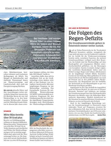 Der trockene und warme Winter führt zu einer frühen Dürre im Süden und Westen Europas, warnt die EU. Für Alexander Podesser von Geosphere Austria ist klar: Eklatantes Schneedefizit von heute ist Trockenheit des nächsten Sommers.