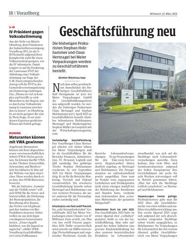 Die bisherigen Prokuristen Stephan Holzhammer und Claus Hertnagel bei Meier Verpackungen werden zu Geschäftsführern bestellt.