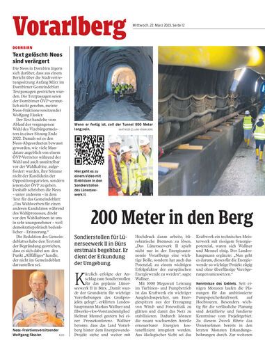 Sondierstollen für Lünerseewerk II in Bürs erstmals begehbar. Er dient der Erkundung der Umgebung.