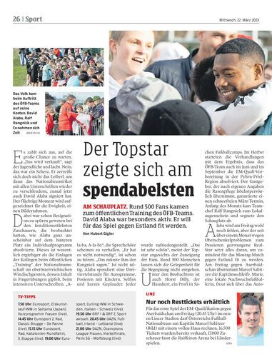 Am Schauplatz. Rund 500 Fans kamen zum öffentlichen Training des ÖFB-Teams. David Alaba war besonders aktiv. Er will für das Spiel gegen Estland fit werden. Von Hubert Gigler