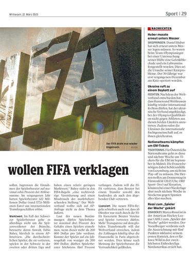 Spielerberater aus der Schweiz klagen gegen neue FIFA-Regeln, wonach der Weltverband die Beraterhonorare ab sofort begrenzen wird.