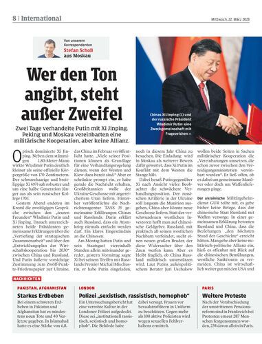 Zwei Tage verhandelte Putin mit Xi Jinping. Peking und Moskau vereinbarten eine militärische Kooperation, aber keine Allianz.