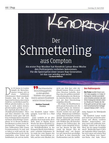 Als erster Pop-Musiker hat Kendrick Lamar diese Woche den Pulitzerpreis verliehen bekommen. Für die Speerspitze einer neuen Rap-Generation ist das nur würdig und recht! Von Bernd Melichar