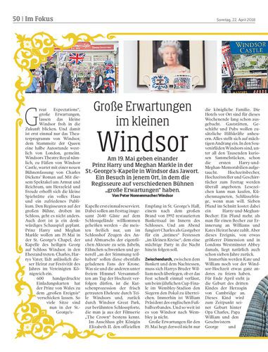 Am 19. Mai geben einander Prinz Harry und Meghan Markle in der St.-George’s-Kapelle in Windsor das Jawort. Ein Besuch in jenem Ort, in dem die Regisseure auf verschiedenen Bühnen „große Erwartungen“ haben. Von Peter Nonnenmacher/Windsor